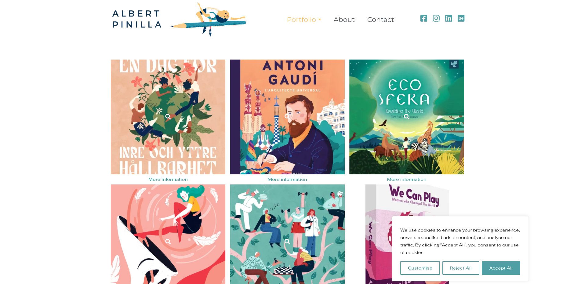 Descripción del cliente: Albert Pinilla es ilustrador freelance de Barcelona, con sede en Vaasa, Finlandia. Ha trabajado con empresas e instituciones de todo el mundo como Usborne, Bookworks, Bushel & Peck Books, el Ministerio de Cultura español, la Generalidad de Cataluña, entre otros. Su trabajo incluye un amplio abanico de campos, como libros, revistas, packaging, murales, juegos de mesa y vídeos animados.